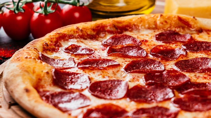 — Скидка 30% на пиццу «Пеперони» (халяль)с колбасками «Пеперони» на томатном соусе (30см) вес: 0,5 кг (574 руб. вместо 820 руб.)