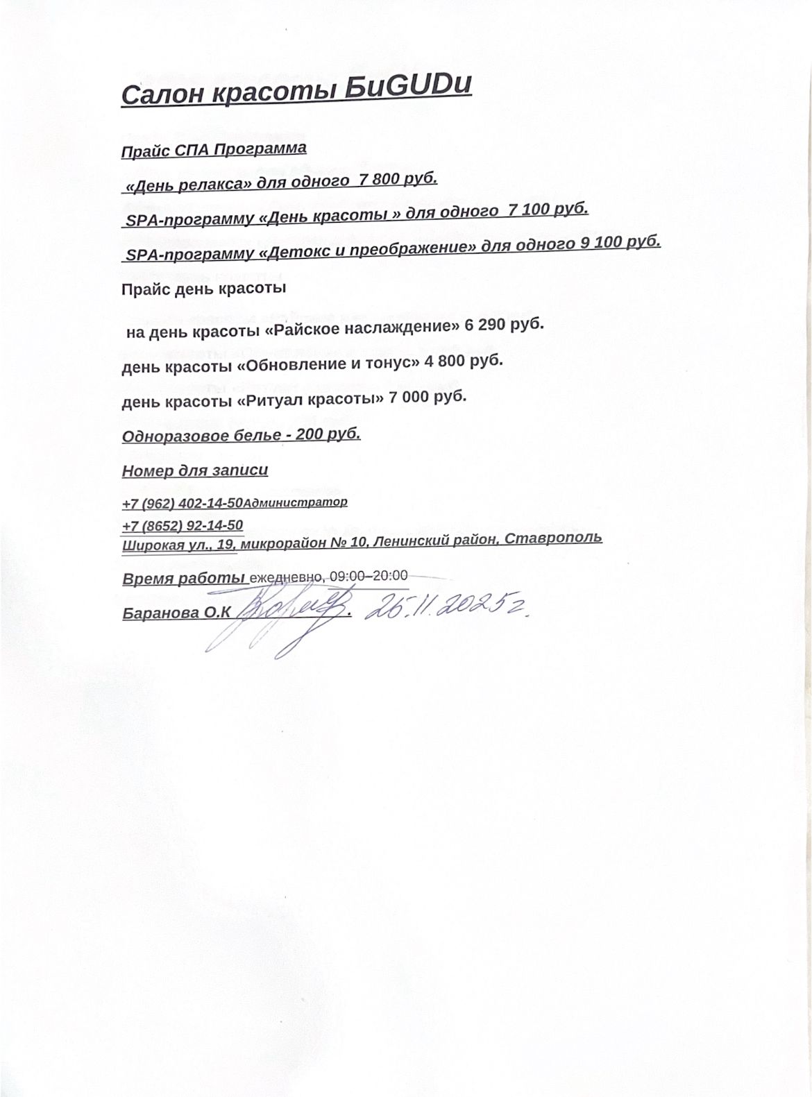 Основные условия: — обязательна предварительная запись по телефону;